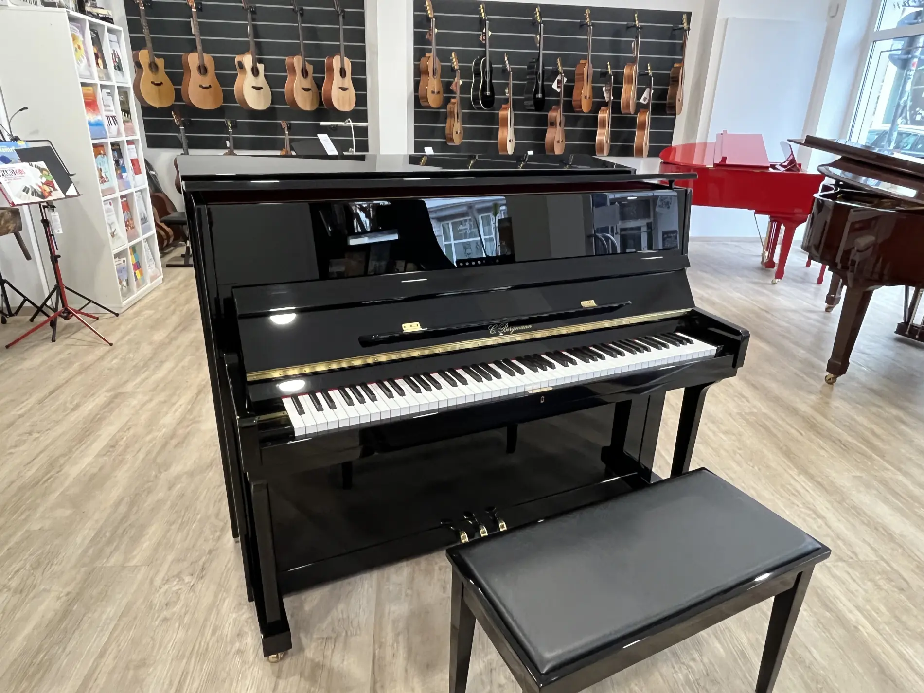 Das C. Bergmann Piano Mod. 115 ist eine zuverlässige Hausmarke mit kompakter Bauhöhe, klarer Klangfarbe und stabiler Verarbeitung. Ein solides Einsteigerklavier für Familien, Musikschulen und alle, die ein langlebiges akustisches Piano zum attraktiven Preis suchen.